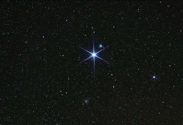 Foto unten: Sirius - Dieser Stern (Sonne) namens Sirius aus dem Sternenbild Jagdhunde ist nach unsere Sonne der nächste Stern. Unser Sonnensystem dreht sich um ihn herum. Text und Foto: Manfred Manthey