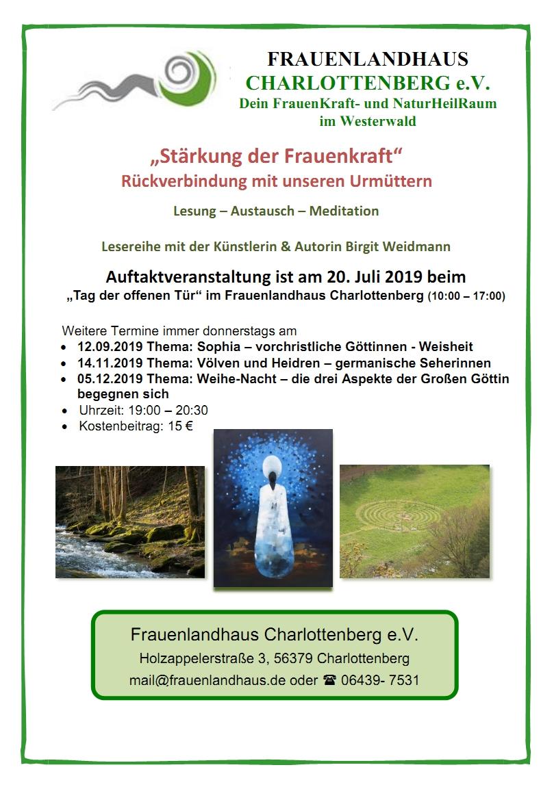 An drei Donnerstag-Abenden bin ich im Frauenlandhaus Charlottenberg. Mein Anliegen ist einen lockeren Abend mit geistiger und spiritueller Nahrung zu gestalten.