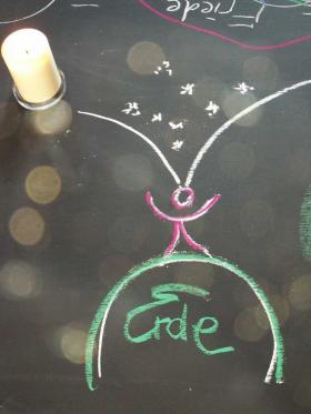 Die Tafel-Zeichnung auf Foto oben entstand während eines Retreats